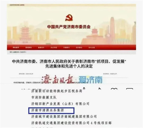 近年来,集团荣获济南市2023年“项目突破年”创新创优劳动竞赛集体一等奖、济南市2024年“抓项目、促发展”先进集体、济南市属国有企业党组织标准化示范点、山东省企业党建品牌优秀案例及济南市优秀思政品牌等荣誉。近期,“碧水清源”“志愿先锋”党建品牌又荣获济南市属国有企业“百佳品牌”称号。